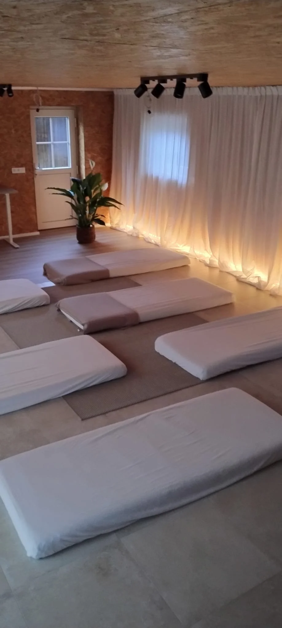 Alles is voorzien: matjes, dekens, thee, rust, sfeer. Tussen de sessies krijg je audio’s en oefeningen mee naar huis, zodat de rust niet stopt aan de deur, maar een plek krijgt in je dagelijks leven.